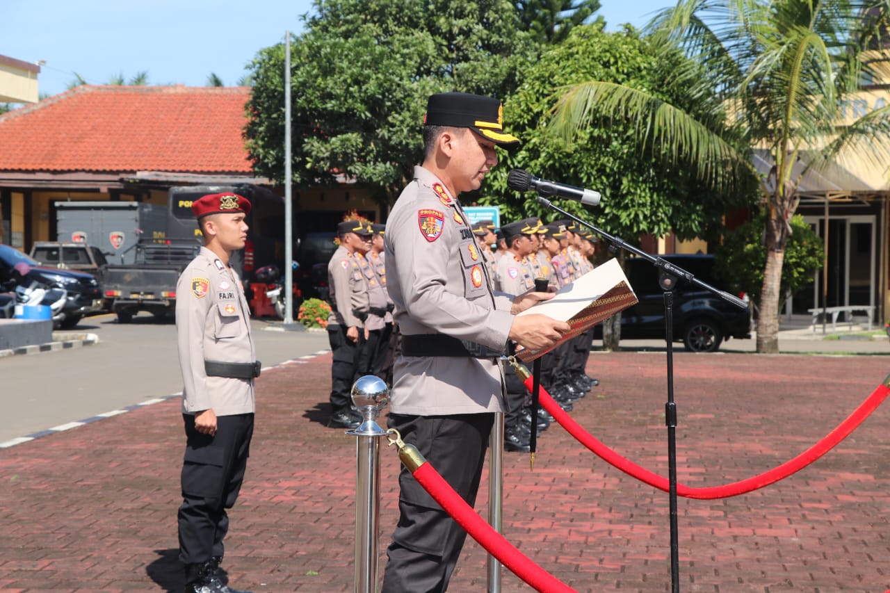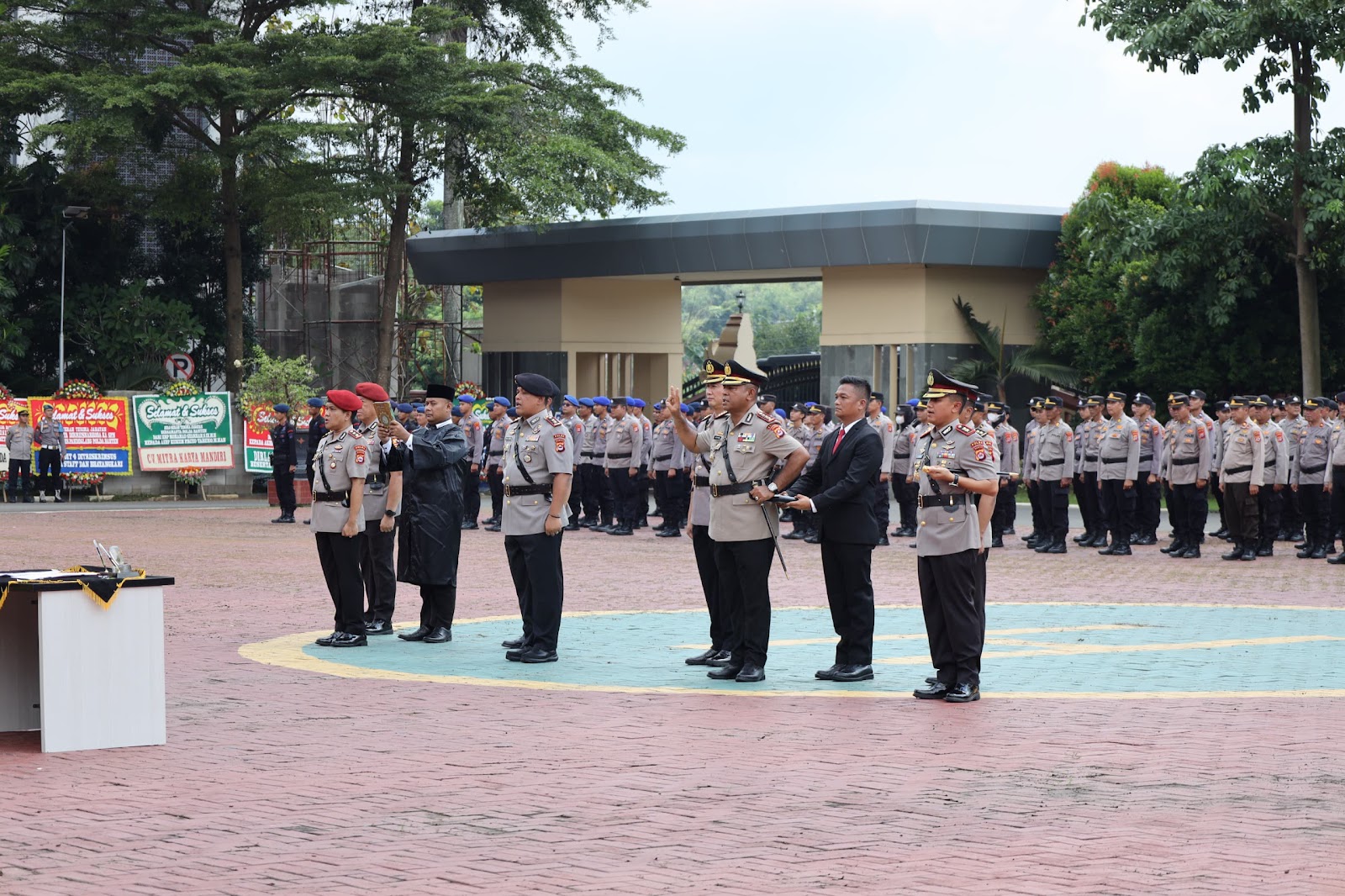 Kapolres Lebak Polda Banten AKBP. Herfio Zaki., SIK.,MH Pimpin Upacara dan pisah sambut Waka Polres Lebak, Kabag Ops Polres Lebak dan Kapolsek Warunggunung, Curugbitung, Cileles dan Kapolsek Bojongmanik di Halaman Mapolres Lebak.
