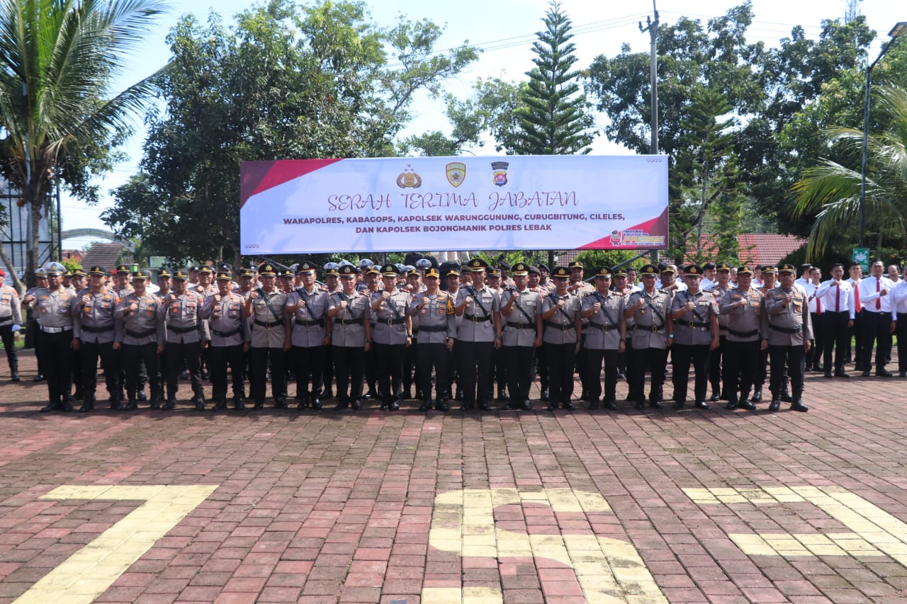 Kapolres Lebak Pimpin Upacara Serah Terima Jabatan Wakapolres, Kabagops, Kapolsek Warunggunung, Curugbitung, Cileles dan Kapolsek Bojongmanik Polres